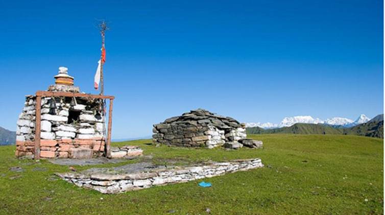 The trek begins with a 3 km climb to the ridge Bistola. Then a gentle walk up to Ghoda Loutani from where steep ascending up to Kalu Vinaik Dhar via Patar Nachouni. This is the most strenuous part. The climb to Kalu Vinaik is a steep zig-zag up to the small rock temple is located where a black idol of Ganesh ji is worshipped by the shepheards and trekkers.In Bhaggubasa an improvised stone shelter and camping site provides a spectacular view of the majestic Trishul and on the other side deep silent valleys covered with clouds. In May and early June this place is covered with snow. Overnight stay and meals in tents.